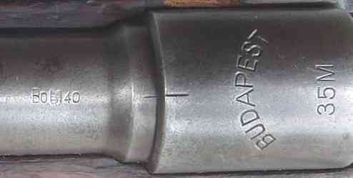 Made by Fémáru Fegyver és Gépgyár Rt. (FÉG), Budapest, 1937-1941 Possibly also made by Danuvia Gépgyár Rt, Budapest, 1941 Caliber: 31.M 8x56mm rimmed 1110mm [43.7"] overall, 3.98kg [8.8 lbs] 600mm [23.6"] barrel, 4-groove rifling, RH, concentric, 1 turn in 250mm Muzzle velocity 730 m/sec [2400 fps] with 31.M cartridge Integral clip-loaded box magazine, 5 rounds Action: Turning-bolt Mannlicher action, locked by 2 rotating lugs on the bolt body into the receiver plus by the bolt handle. The rifle has a two-piece bolt with the bolt handle positioned ahead of the receiver bridge when the bolt is forward. The bolt is an improved Mannlicher-Schoenauer type, while it retains the well liked M.95 type knurled cocking piece. The cocking piece allows the rifle to be cocked or uncocked quietly without moving the bolt. A Mauser-type wing safety is also featured. |