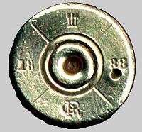 Work on the M1886 ceased in 1887, and trials began again. Major contenders were a Belgian-made Schulhof, an 1887-pattern Mannlicher with a drum magazine, the M1887/88 Mannlicher-Schoenauer, and a new 8mm small-caliber Mannlicher M1886. In 1888 concerned by the complexity of the Schulhof and Mannlicher-Schoenauer, the trials board recommended the simplest 8mm variant of the M1886 rifle, production tooling for most of which already existed. The Repetier-Gewehr M1888 was identical with its predecessor, apart from chambering a smaller cartridge and having a graduated back sight. The auxiliary long-range sighting system sufficed for 1800-2500 schritt. Owing to the reduced diameter of the cartridge base, the magazine case of the M1888 is noticeably shallower than the M1886. |