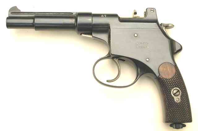 had to be thumb-cocked for every shot, or could be tripped by pulling through on the trigger in revolver fashion. Prototypes may have chambered an 8mm rimmed