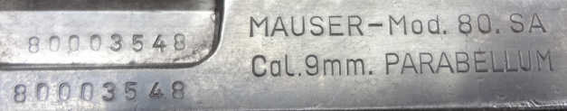 The model 'Mauser - Mod. 80. SA' and caliber 'Cal. 9mm. Parabellum' was added to the right side of the slide.