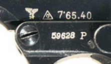 1930's Austrian State Security Police issued pistols were marked with 'SW' (Sicherheitswache Waffen) [Bundespolizei] on the rear grip strap. Based on the SW numbers research, approx. 9200 pistols were marked this way. SW numbers reported: 32 - 9159 |