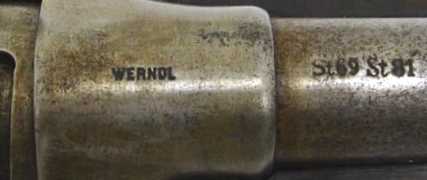 Shortened M1867 saber bayonet. 600mm overall, 472mm blade length. Most bayonets were shortened by approx. 100mm |