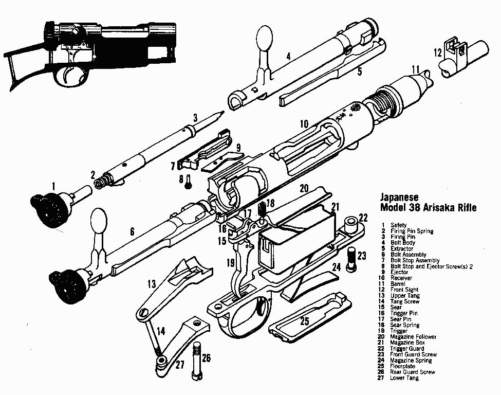 Arisaka Type 38 Rifle Assembly Drawing and Parts List