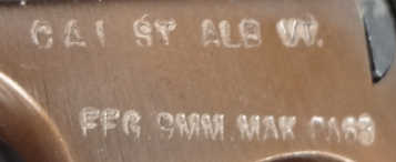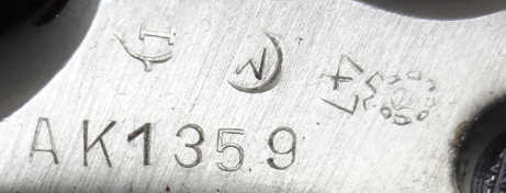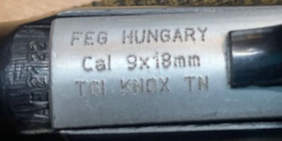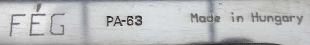 Standard Hungarian FEG inspection marks. Standard serial numbering was abandoned and a 6-digit number with a single letter prefix was used.