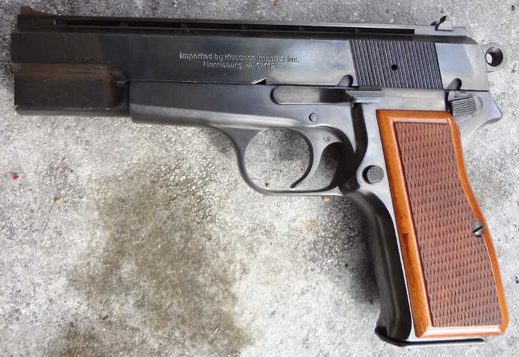 An export version of the Model P9M, with slide-mounted safety catch, SA only, safety on steel frame, barrel is hard-chromed inside and outside.
