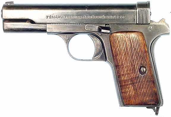 Approx. 50,000 manufactured by Fémárú- Fegyver- és Gépgyár Rt, Budapest 1929-35 Type: blowback operated automatic pistol Chambering: 9mm Browning Short, 9x17mm, (.380acp), 29M Length overall: 172mm [6.77"] Barrel: 100mm [3.94"] 4-groove rifled, rh Weight unladen: 750g [26.5oz] Magazine: 7-round detachable box