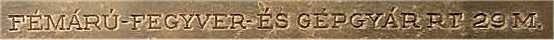 Sometime after serial 14000 the pistols were marked 'FÉMÁRÚ- FEGYVER- ÉS GÉPGYÁR RT 29M.' on the slide.
