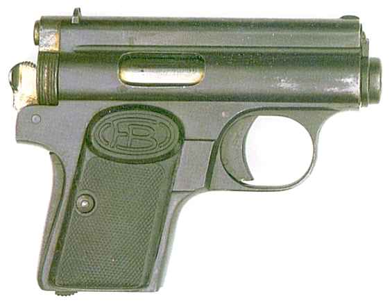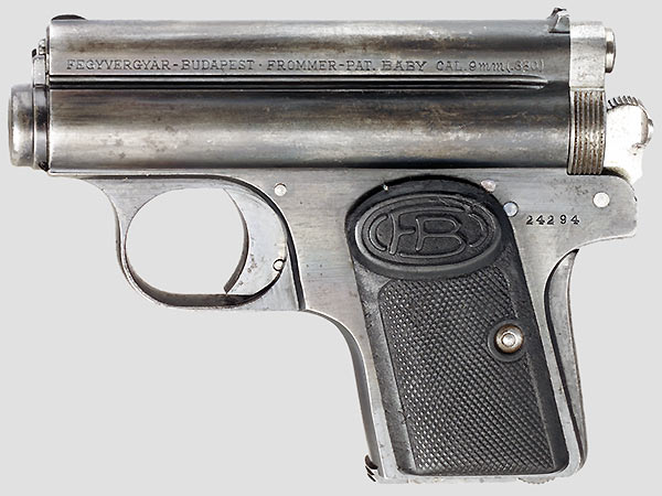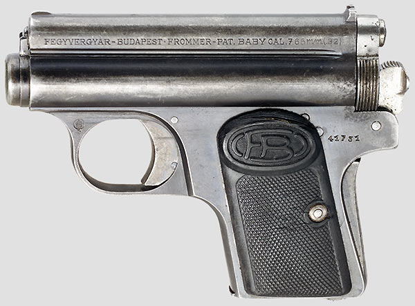 This is a smaller version of the Frommer Stop, primarily intended as a 7.65mm pocket pistol for the civilian market. The checkered grips are marked 'FB'.