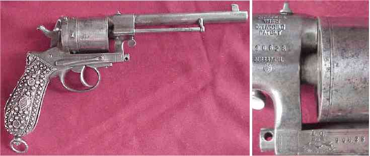 Montenegrin Gasser-style revolvers were made by numerous small Belgian and Austrian firms, as well as by Leopold Gasser. Belgian marks shown on the picture on the left. |