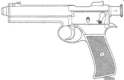 Type: automatic pistol (recoil operated) 232mm Overall, 128mm Barrel Length Caliber: 8mm, 10 rds. An improved re-design of the Krnka Model 1899. It was tested by the Austro-Hungarian Army and eventually led to the adopted Steyr-Roth M1907. It also infuenced the Roth .45acp Prototype |