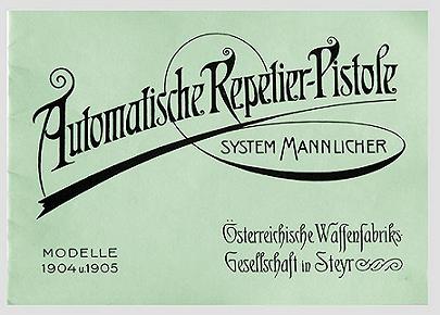 on the front of the left slide arm. Subsequently 'WAFFENFABRIK STEYR' appeared on the lock cover on the left side of the gun. Excepting guns supplied on contract to