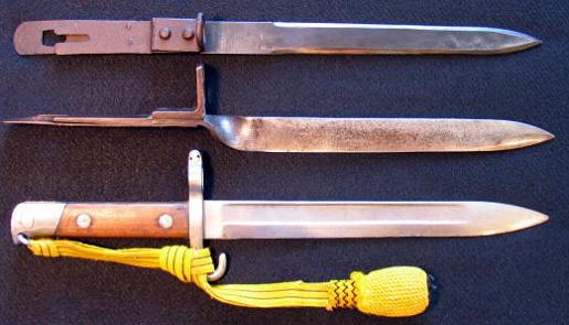 M1888-90 rifle bayonets: Two "Ersatz" and an NCO