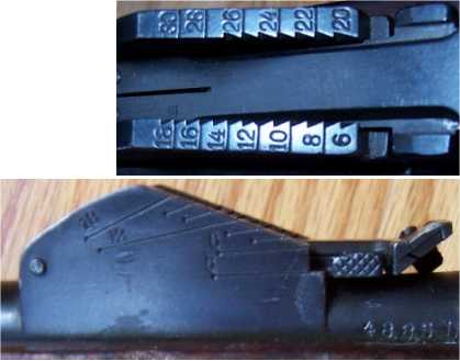 had newly made sights graduated to 1800 schritt. Long range sights on the left side of the gun - an extension to the back sight slider and a protruding pin