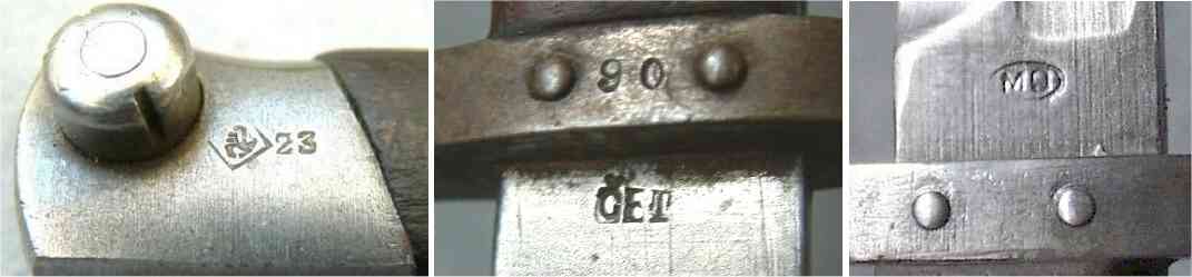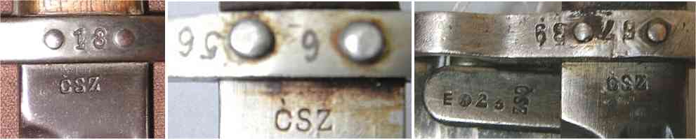 Czech CZ Brno made bayonets are marked with 'Cs.St.' or 'CSZ' or 'CET', and usually with the Czech Rampant Lion proofmark: E [Lion] Date. Original bayonets were not serial numbered. Markings Explanation |