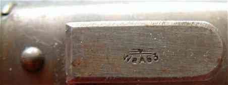 WaA63 acceptance mark on an M95 scabbard. Based on available information, the WaA63 was used 1940-45 on Brno