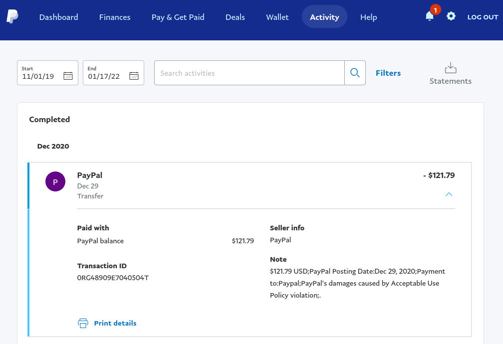 However, the crooks at Paypal stole my balance out of the account on Dec 29, 2020 without my approval, nor any notice.