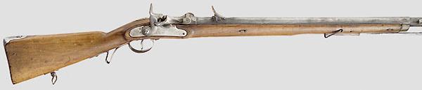 Converted by Österreichische Waffenfabriks-Gesellschaft, Steyr, 1867This weapon is the shorter version of the above rifle. These rifles have a nosecap, but no barrel bands. The barrel is held to the stock by a barrel pin. Spurred trigger guard.
